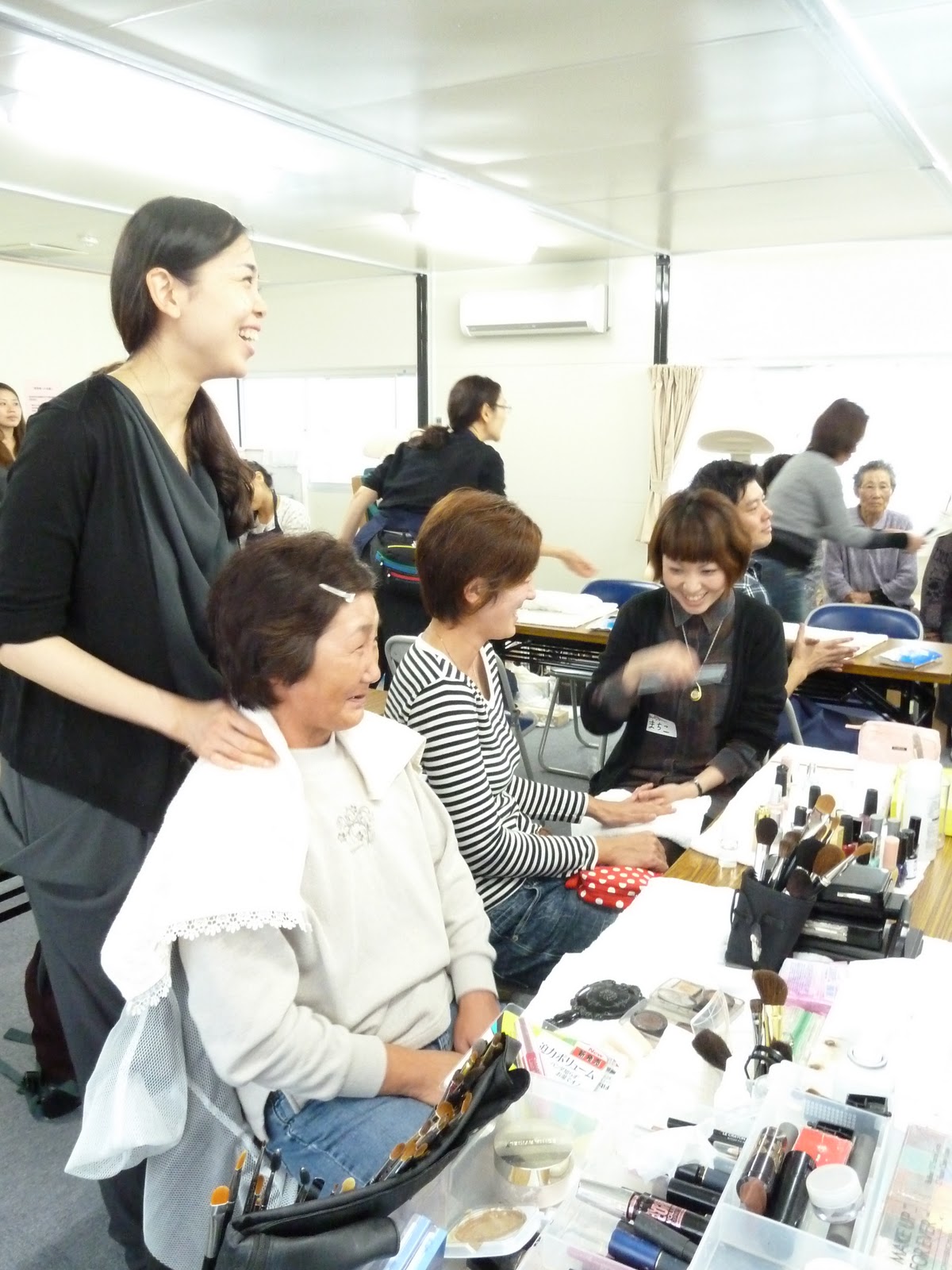 あいにくの雨模様でしたが多くの方が集まってくださいました。少なくとも67名以上の方々にメイク、ネイル、マッサージ、セットの体験をして頂きました。